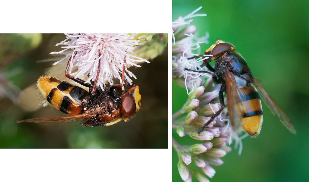 Zunächst stelle ich die beiden Hornissenarten in Wort und Bild gegenüber, anschließend folgen noch einige Informationen über andere Insekten, die auf den ersten schnellen Blick fälschlicherweise für Hornissen gehalten werden können.