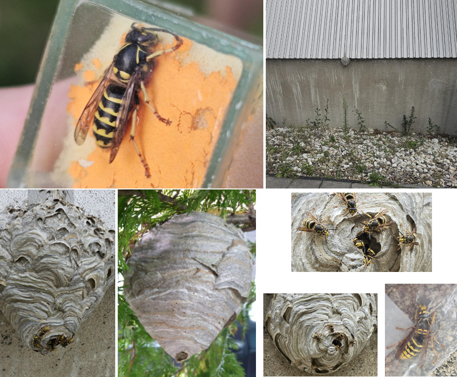 Ganz allgemein: alle sozialen Wespenarten, insbesondere die mit gelben Beinen.