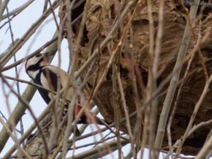 Im Juli wird in 70 % der Fälle das sog. Sekundärnest gebaut (Franklin et al. 2017). Dieses befindet sich in der Regel in luftiger Höhe in einem passenden Baum, der gerne  10 m und höher sein darf. Das Sekundärnest ist um einiges größer als das Primärnest und hat eine kugelig-ovale Form, mit einer Höhe von ca. 60 – 100 cm.