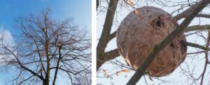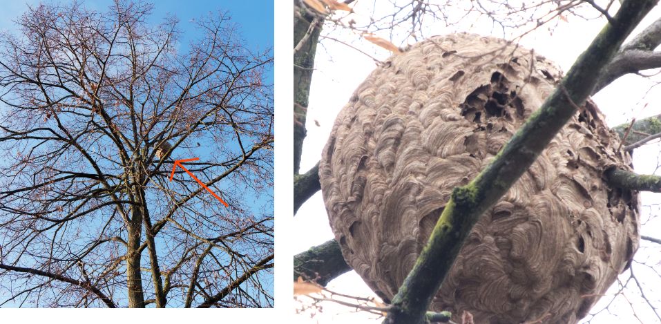 Mit der Asiatischen Hornisse ist ein Nestkontakt meist eher am Primärnest in bzw. am Haus oder in einer Heckezu erwarten.