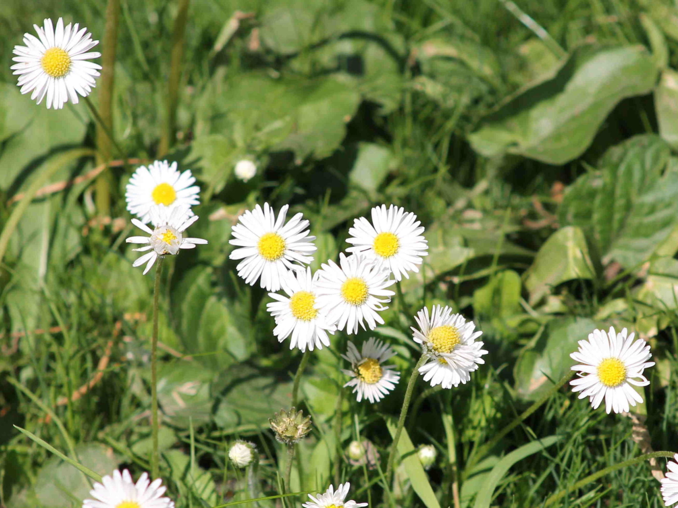 Das Gänseblümchen, oder auch Maßliebchen oder Tausendschön genannt, ist ab Februar auf frischen Weiden, Wiesen in Gärten und an Wegrändern zu finden. Die weit verbreitete Pflanze gehört zur Familie der Korbblütler. Im Zentrum des Körbchens befinden sich die gelben Röhrenblüten, umrandet von weißen Zungenblüten, die sich nachts und bei feuchtem Wetter schließen. Der botanische Name weißt auf den besonderen Charakter der Pflanze hin. Neben bellis lat. für schön, bedeutet perennis lat. soviel wie ausdauernd. Die bis in den November blühende Pflanze erweist sich so hartnäckig und ausdauernd, wie kaum eine andere Pflanze. Auch bei ständigem Kahlschlag durch regelmäßiges Mähen, passt sie zB. ihre Wuchshöhe an oder bildet permanent neue Köpfchen, die sich der Sonne entgegenrecken.